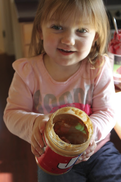 That is very cute, and fun the way you documented it. Sometimes it's hard to work the camera when sticky fingers are so close-- good job being so patient! You are a good Mom. :)